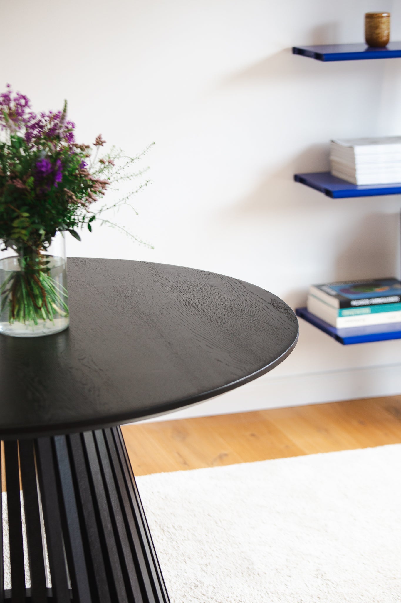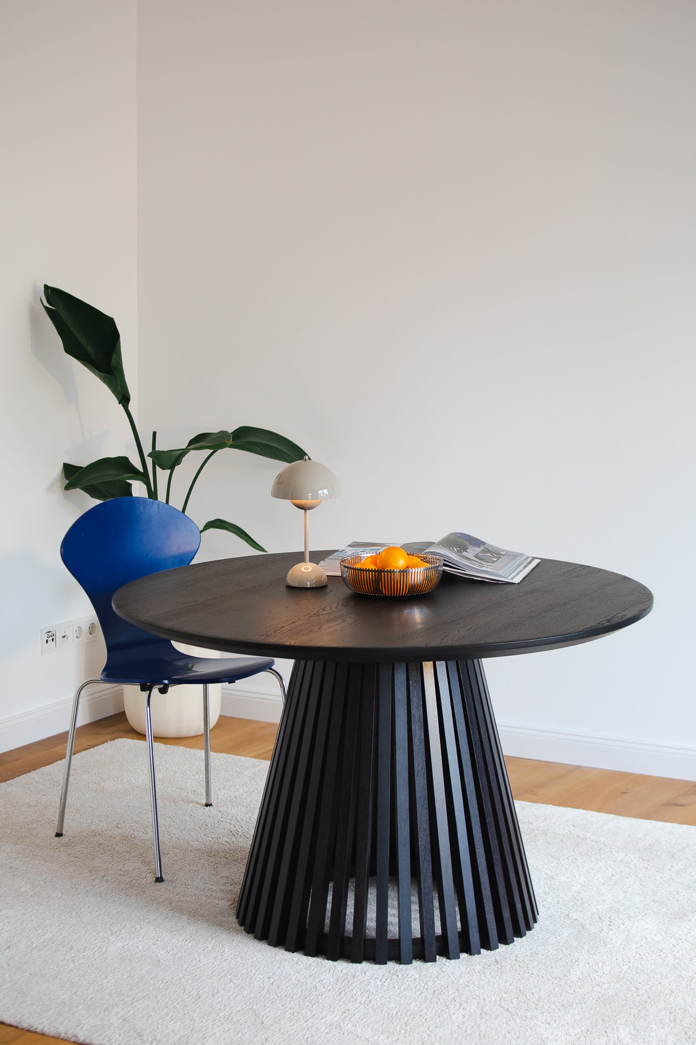 Elegante Tafelrunde: nicht für jeden geeignet – aber für alle, die auf Vielseitigkeit und innovatives Design stehen! Mit einem Gestell aus Eichenstreben führt der Helvetia Esstisch die Tradition meisterlicher Handwerkskunst bei ISCOR fort. Der runde Archetyp besticht durch ein Gestell, das an eine skulpturelle Vase erinnert. Der Tisch ist in zwei edlen Ausführungen erhältlich: Eiche natur oder Eiche schwarz geköhlt — beide Varianten betonen die natürliche Schönheit des Holzes. Die runde Platte lädt ein zum Verweilen mit Sichtgarantie auf alle anwesenden Gäste, was Fluch und Segen zugleich sein kann! Die Profilierung in Form einer Schweizer Kante, welche elegant im 45-Grad-Winkel nach unten abgefast ist, sorgt für eine handschmeichelnde Oberfläche und lässt die Platte